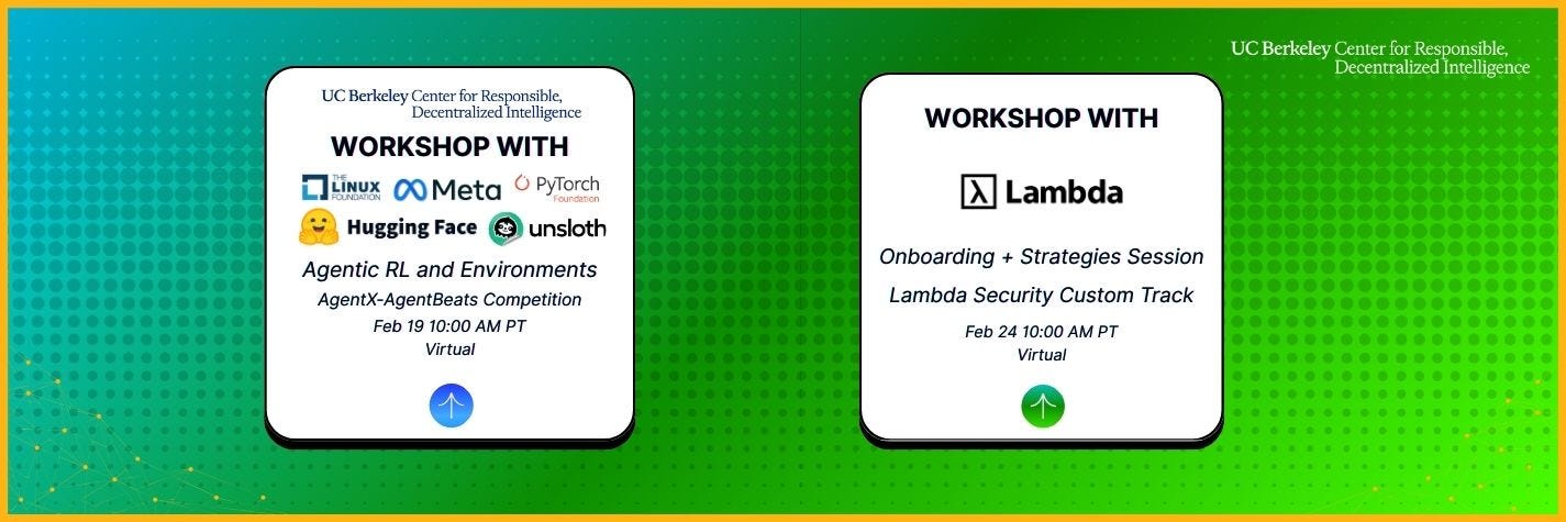 Over the next week, Berkeley RDI is holding two new workshops for AgentX-AgentBeats—packed with practical guidance to elevate your AgentX‑AgentBeats projects (Phase 2) and meaningful insights for the broader agentic AI community.