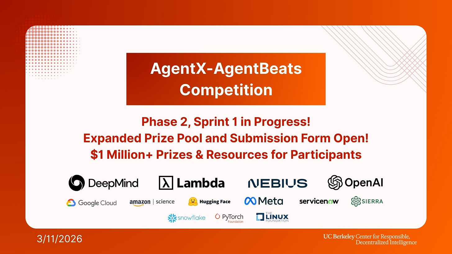 AgentX–AgentBeats Phase 2 in Progress, Prize Pool Updates, Berkeley Xcelerator, Agentic AI Summit Early-Bird Tickets and CFP Open